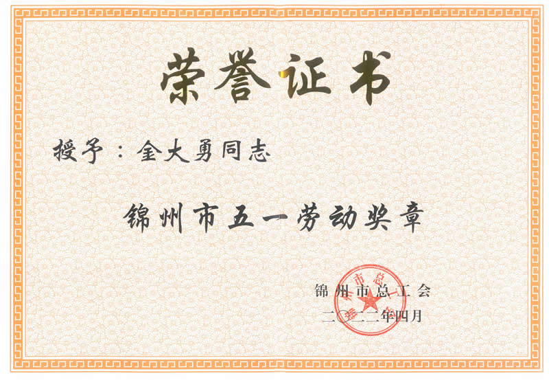 熱烈祝賀公司總經(jīng)理金大勇被錦州市總工會授予“”五一勞動獎章“”